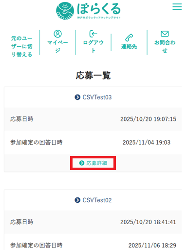 2.対象のボランティア・イベント欄の【応募詳細】を実行します