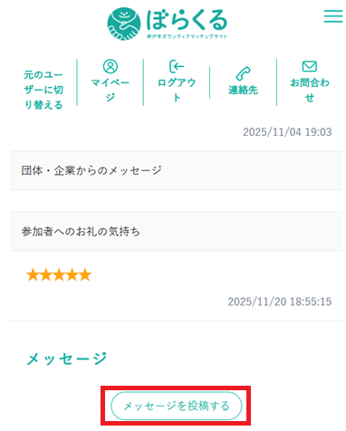 3.詳細画面の下部にある【メッセージを投稿する】を実行します