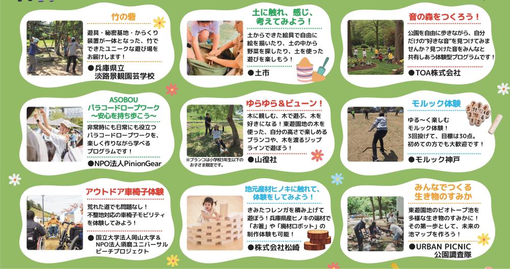 こどもたちが自然に触れながら思いきり体を動かし、身近な素材を工夫して遊びを生み出す体験ができるイベントを東遊園地で開催します。