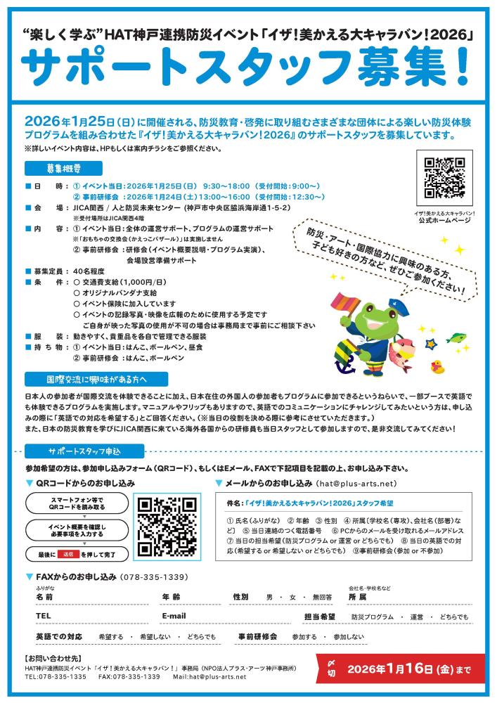 HAT神戸連携防災イベント「イザ!美かえる大キャラバン!2026」サポートスタッフ募集!
