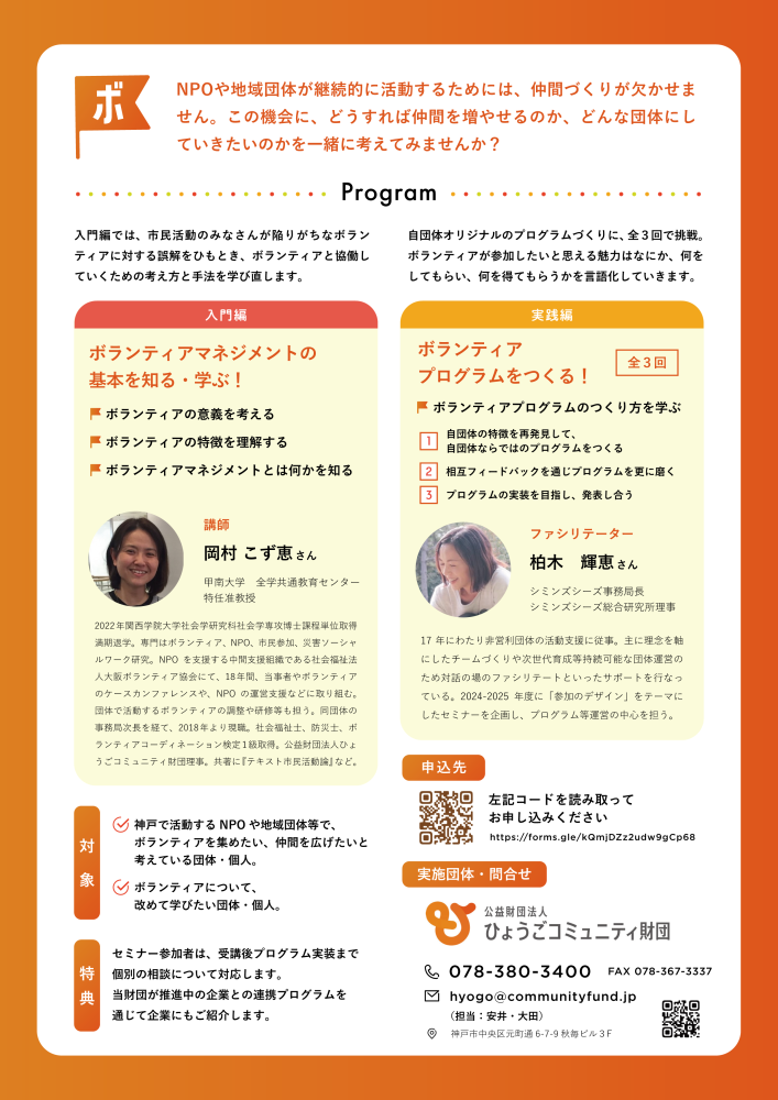 「ボランティアマネジメントの基礎を学ぶ!」入門・実践講座のご案内