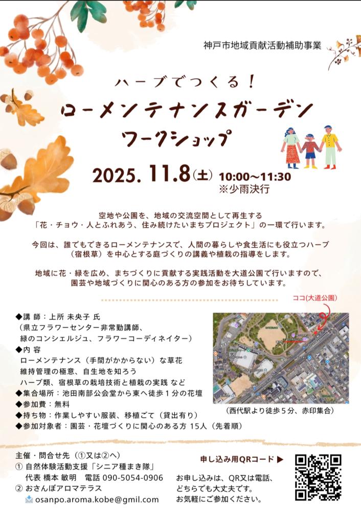 公園の花壇にハーブの苗を植えよう!ワークショップ形式で講師からローメンテナンスガーデンを学び植裁体験ができます。地域活動・地域交流の輪を広げよう♪
