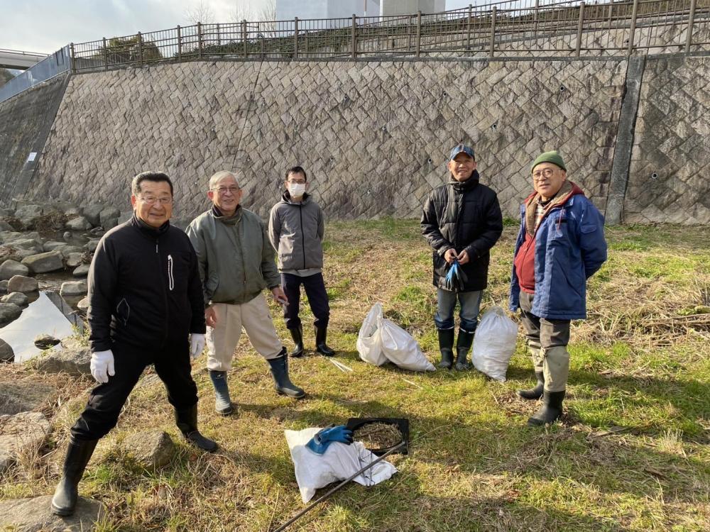 須磨区落合池に源流から垂水漁港横の大阪湾まで垂水区の市街地を縦に貫く全長約8キロの福田川。この流域4か所で、川の高水敷(河川敷)や川の中に入って、下記の通り、週替わりで日曜日の朝1時間、クリーン活動を行っています。
