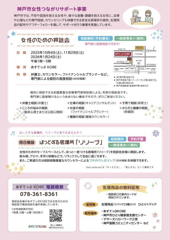 神戸市女性つながりサポート事業 女性のためのワンストップ相談会&ほっとする居場所「リリーブ」